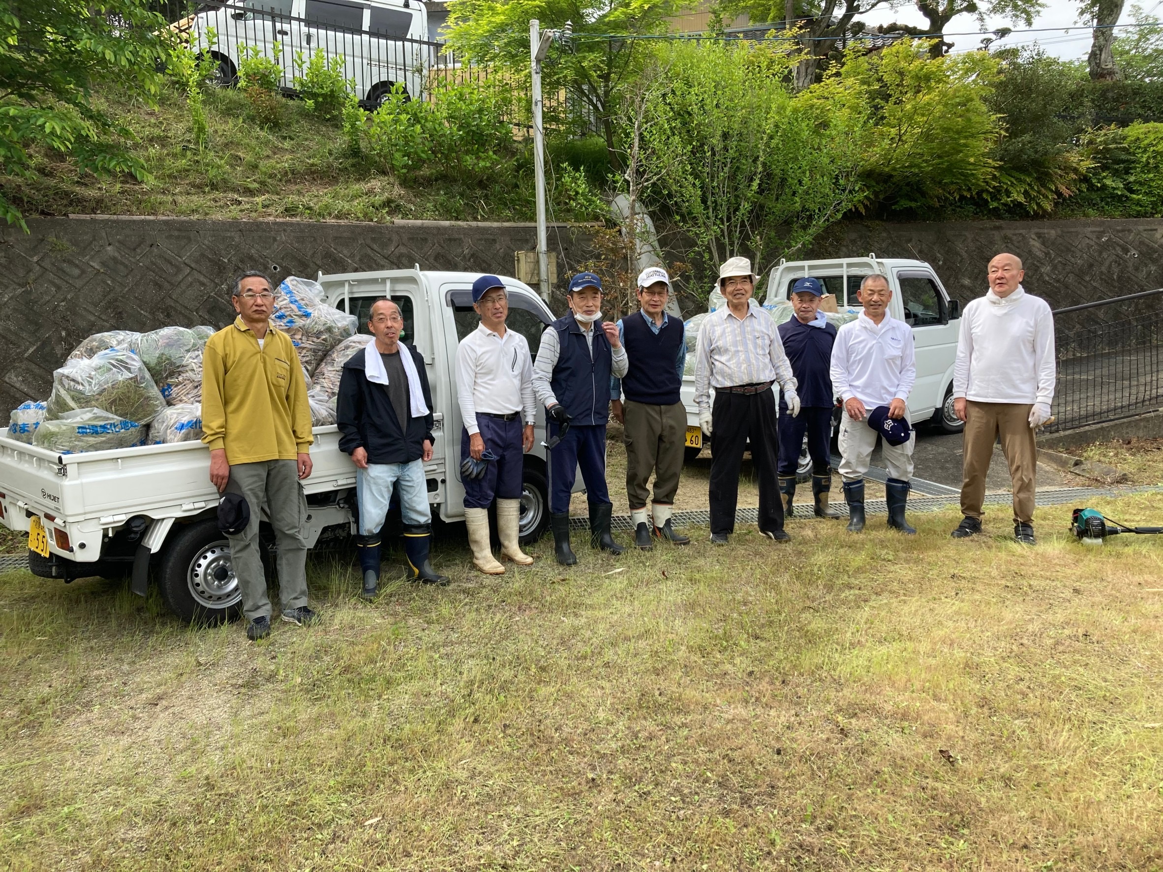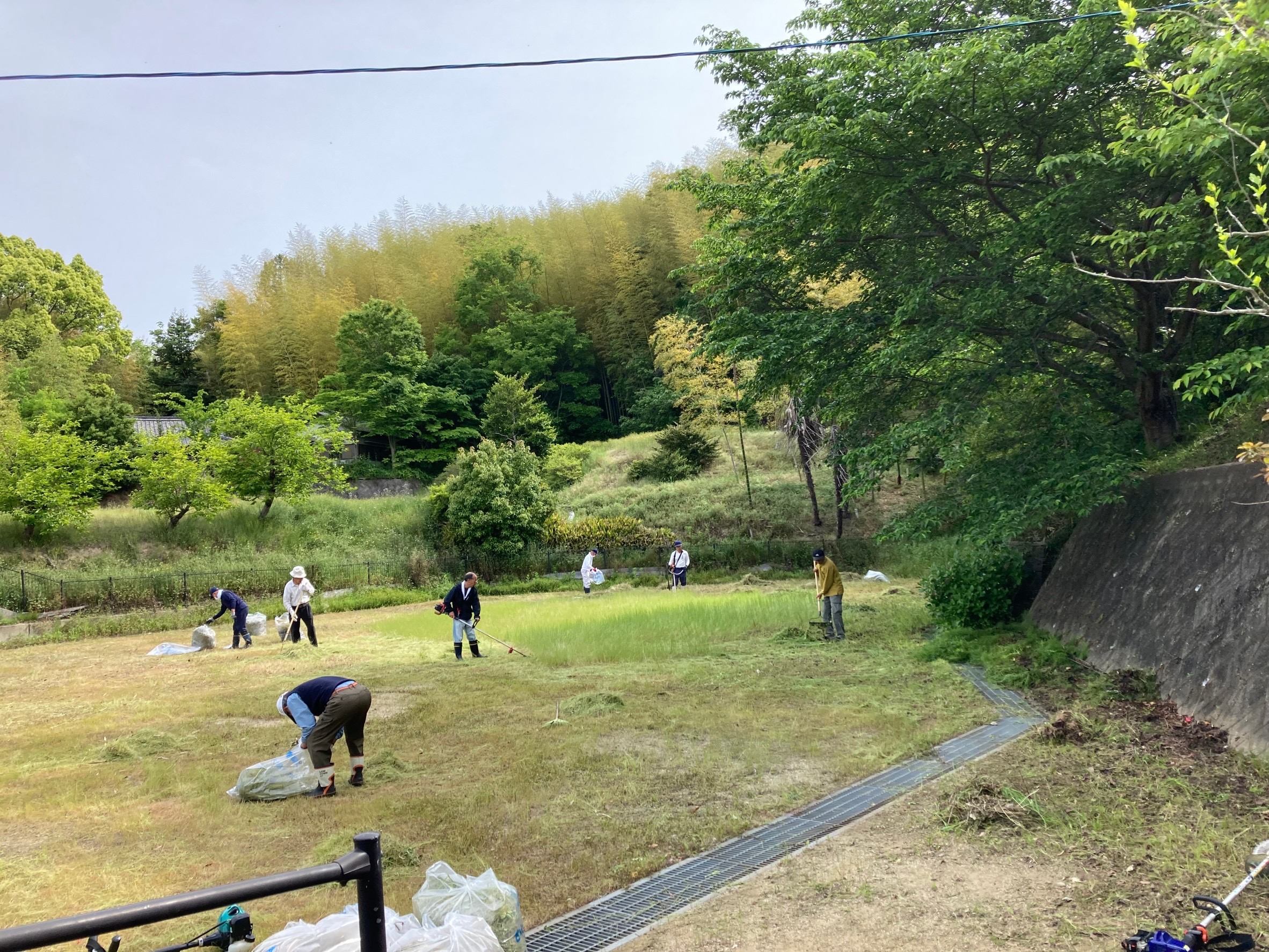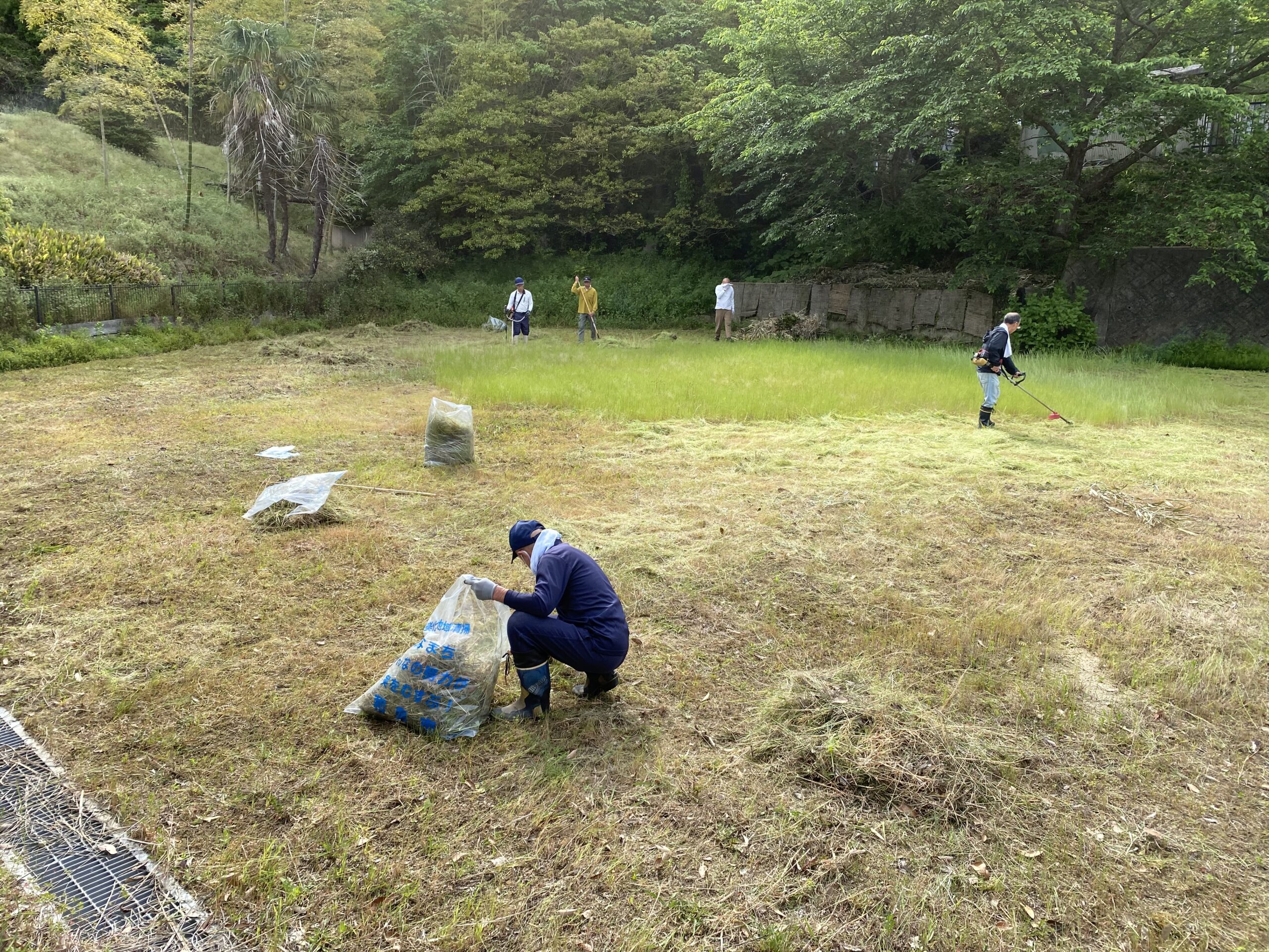 2023.5.5 観福寺住職夫妻様、檀信徒総代様と町会幹事でふれあい広場の草刈りを行いました。