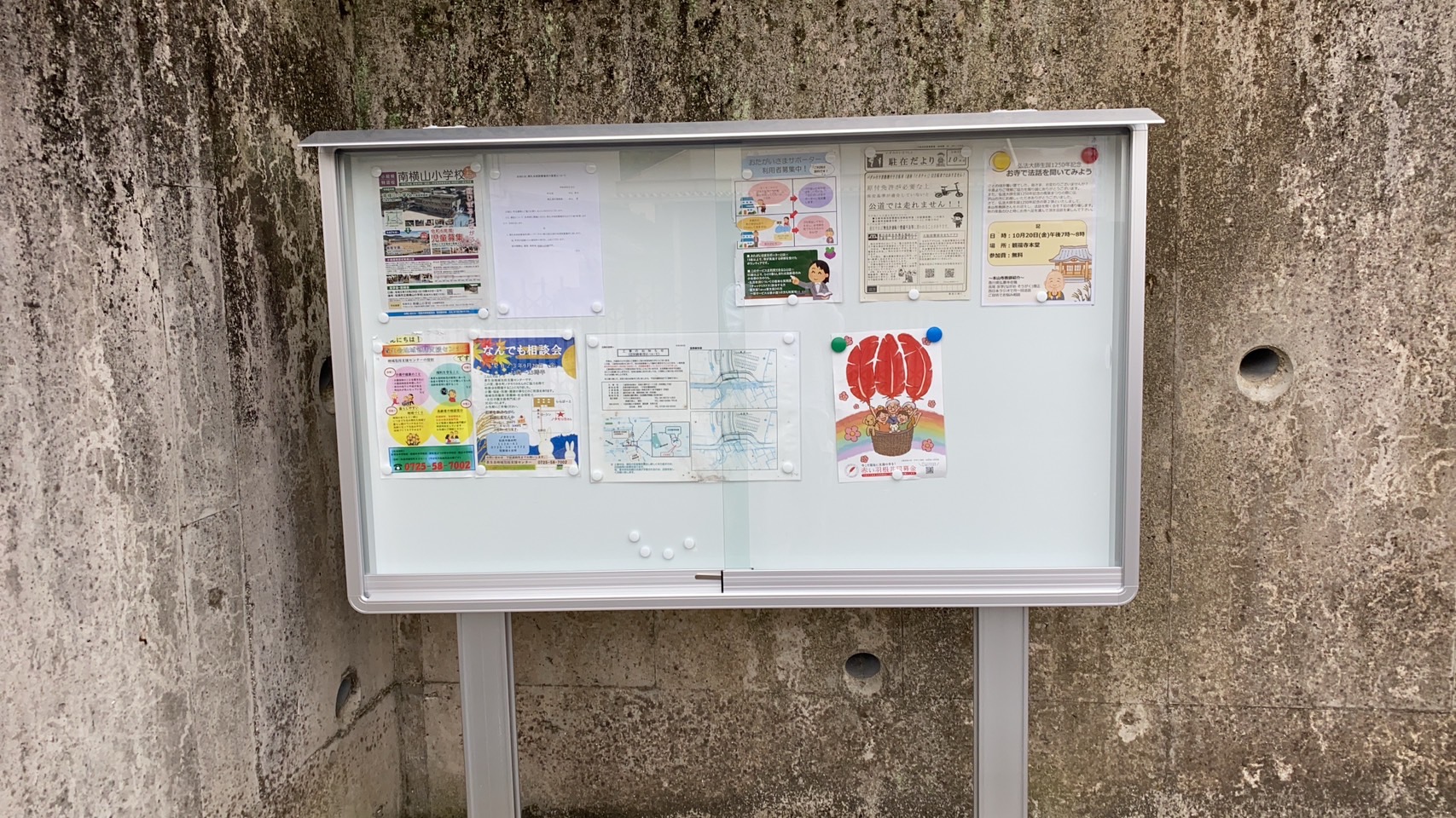 2023.9.30 会館駐車場入口の掲示板をガラス戸付きに交換いたしました。