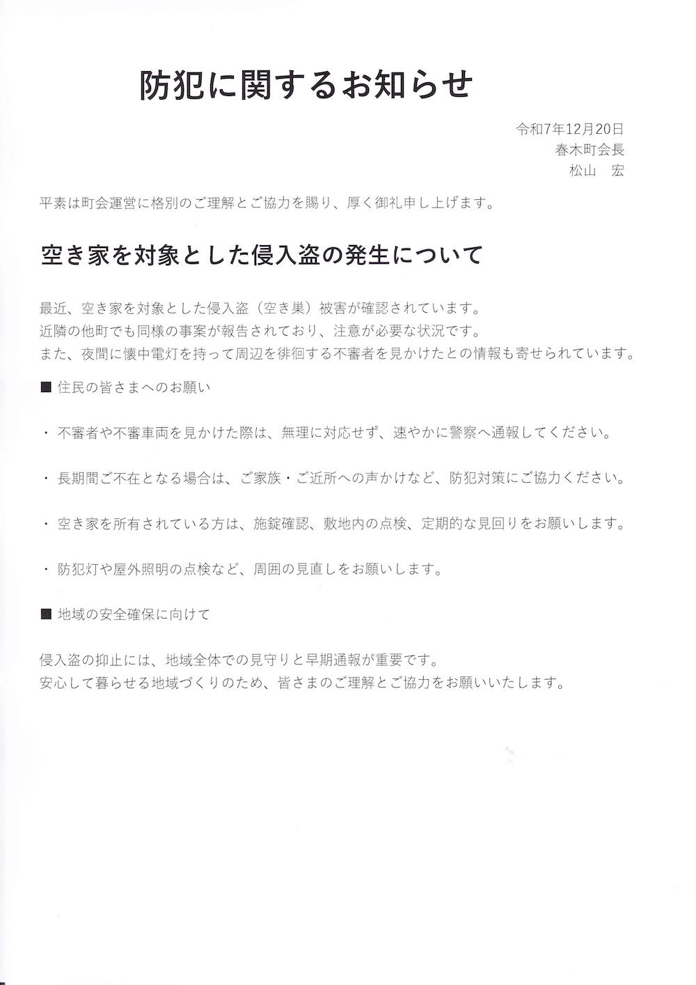 防犯に関するお知らせ