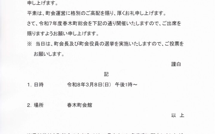 令和7年度 春木町総会開催のお知らせ